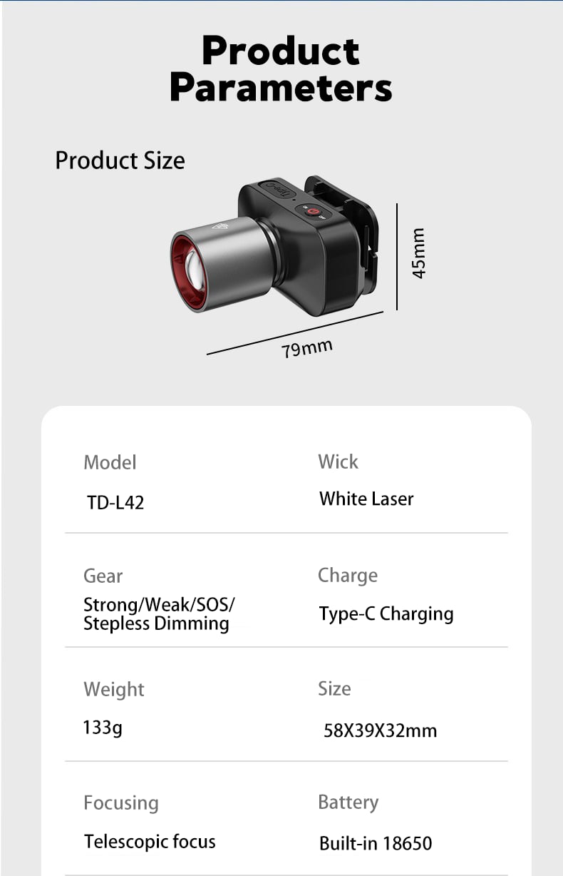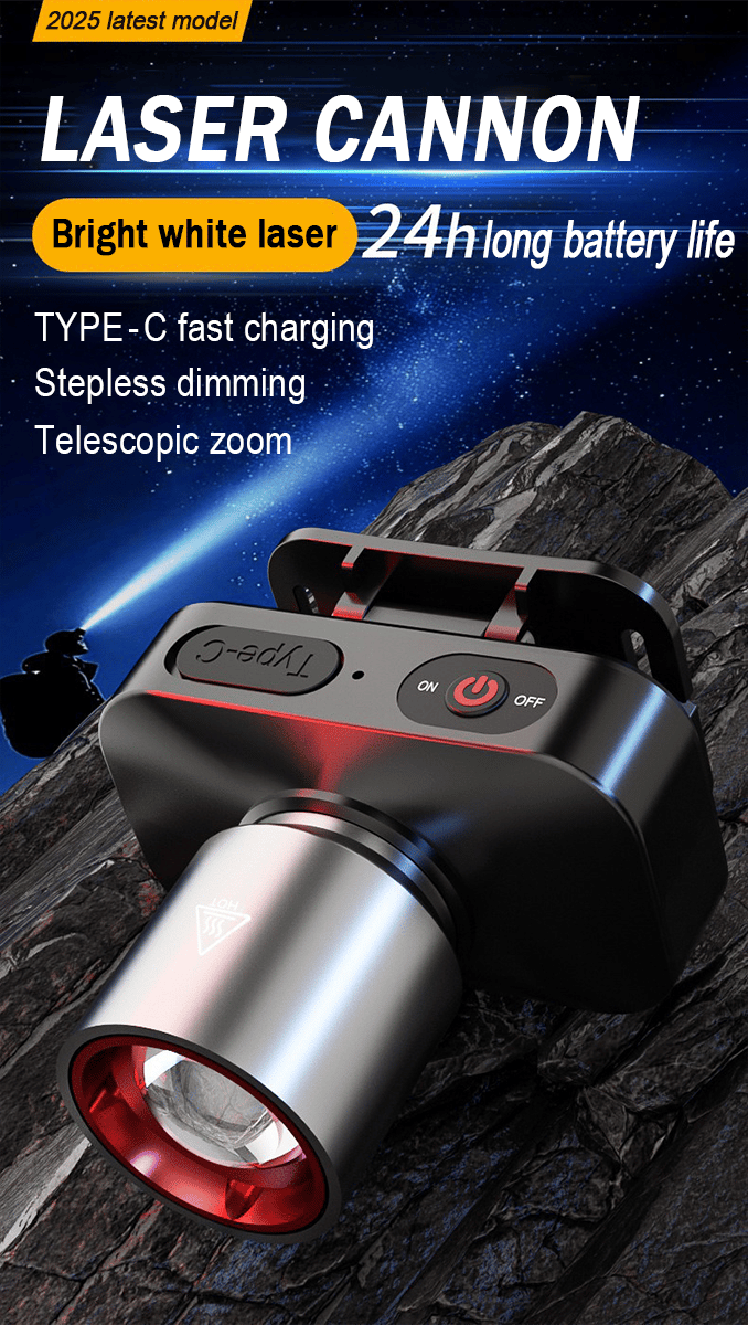 Flash Sale 50K+ SOLD! Almost Gone-White Laser LED Headlamp – 72h Ultra Bright for Outdoors, Powerful Lighting with Rechargeable Lithium Battery
